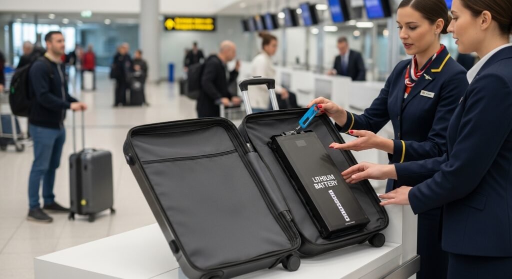 Those fancy suitcases with built in charging ports are really cool. They can cause a massive headache at the counter if the battery cannot be removed so you must be able to pop the lithium battery out before checking the bag or the airline will refuse your luggage.
