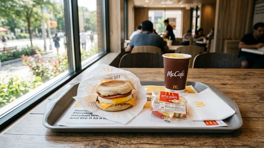Let me tell you the McDonald’s Egg McMuffin actually has a really good mix of protein from the egg and cheese and meat plus carbs from the muffin to give you morning energy. It has around 310 calories and 17 grams of protein which is a totally reasonable amount to help keep your stomach full throughout the busy morning so you are not starving by lunchtime.
