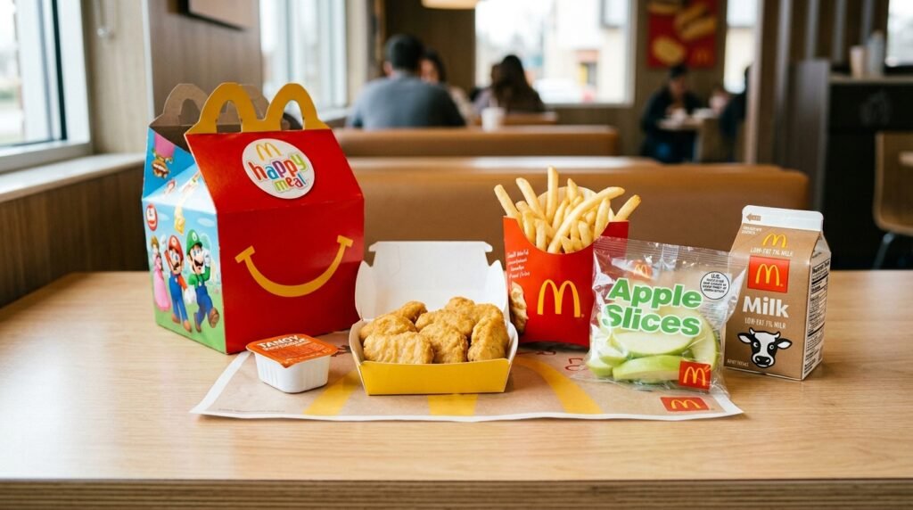 Some nutrition experts actually love ordering a six piece nugget Happy Meal because it comes with apple slices and low fat milk and a really tiny serving of hot fries. This is a super smart way to get smaller portions of everything you want without going overboard on huge sodas or milkshakes and you even get a toy which is always a fun little bonus.