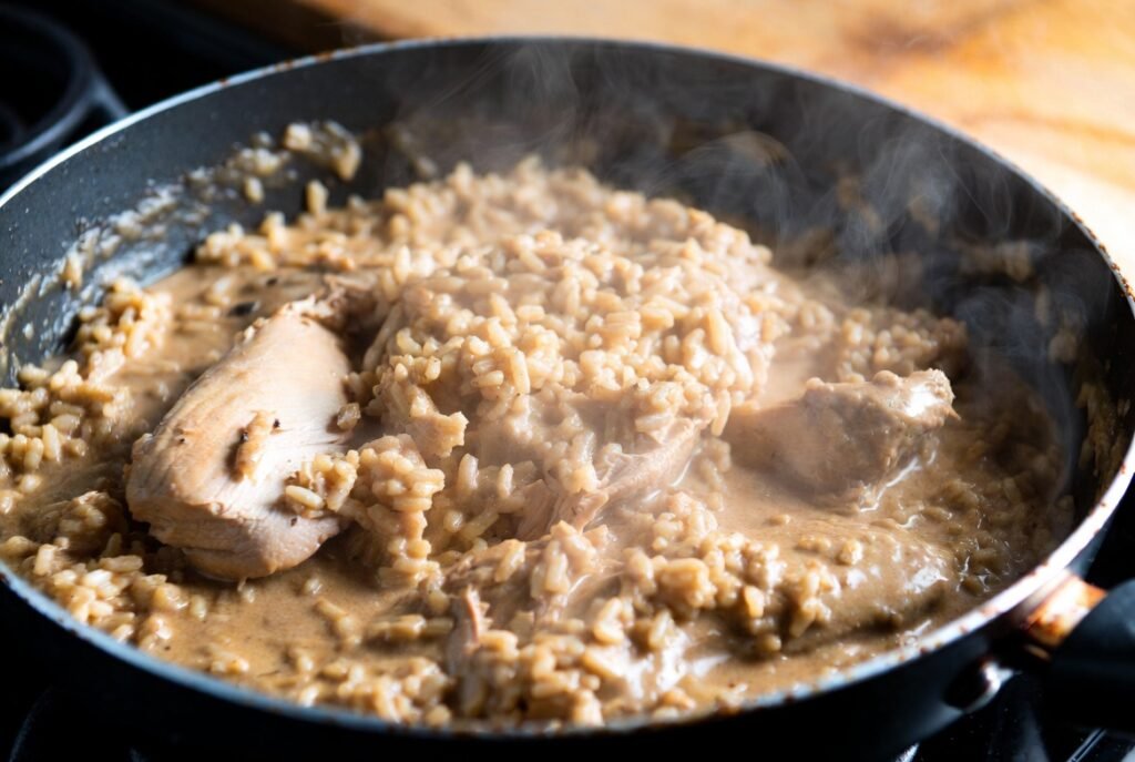 This one- visage mess is perfect when comfort is the precedence. Chicken culinarians with rice, broth, cream, and seasonings until everything is tender and invested with flavor. The delicate texture and warm spices make it incredibly satisfying, especially when hunger situations are high.
