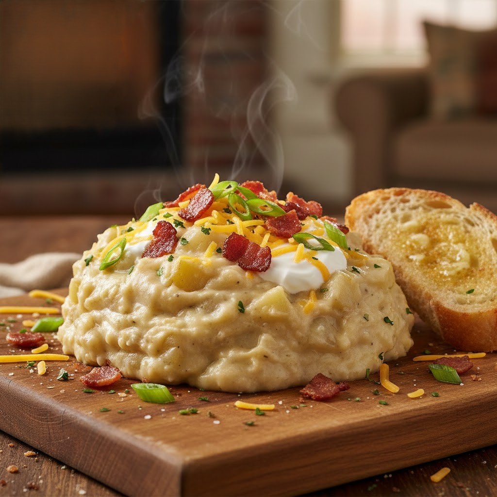 This soup brings baked potato comfort in a bowl. It is thick and filling. Bacon bits and green onions add extra comfort. It is easy food to enjoy when storms keep you home inside safely.
